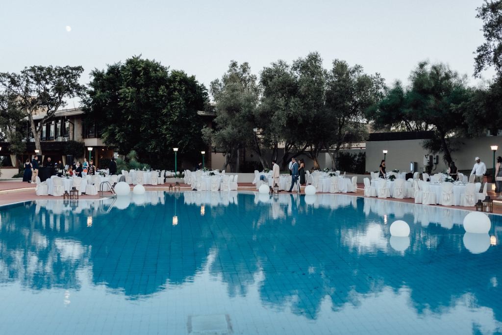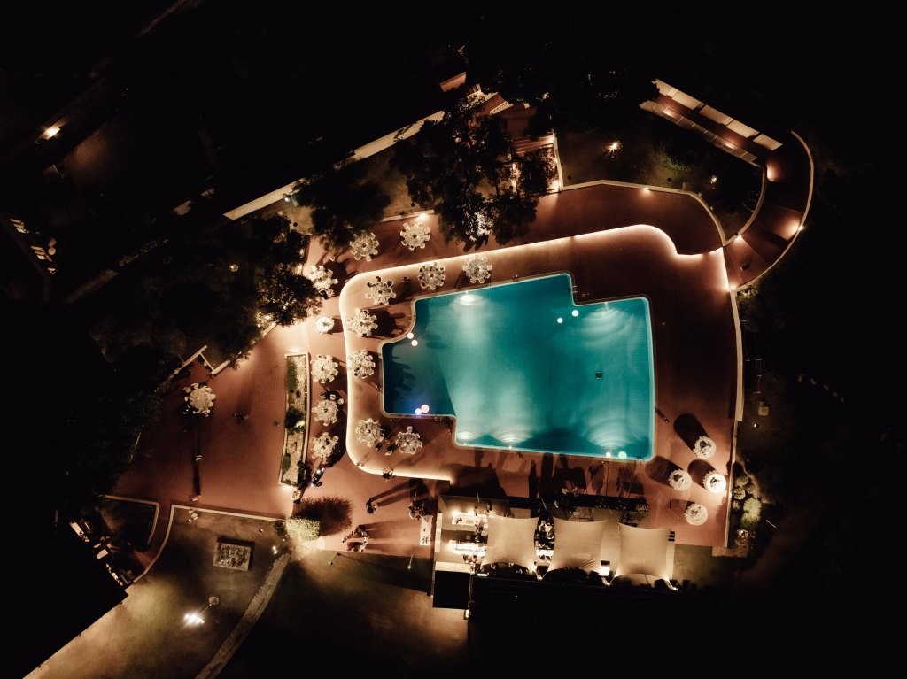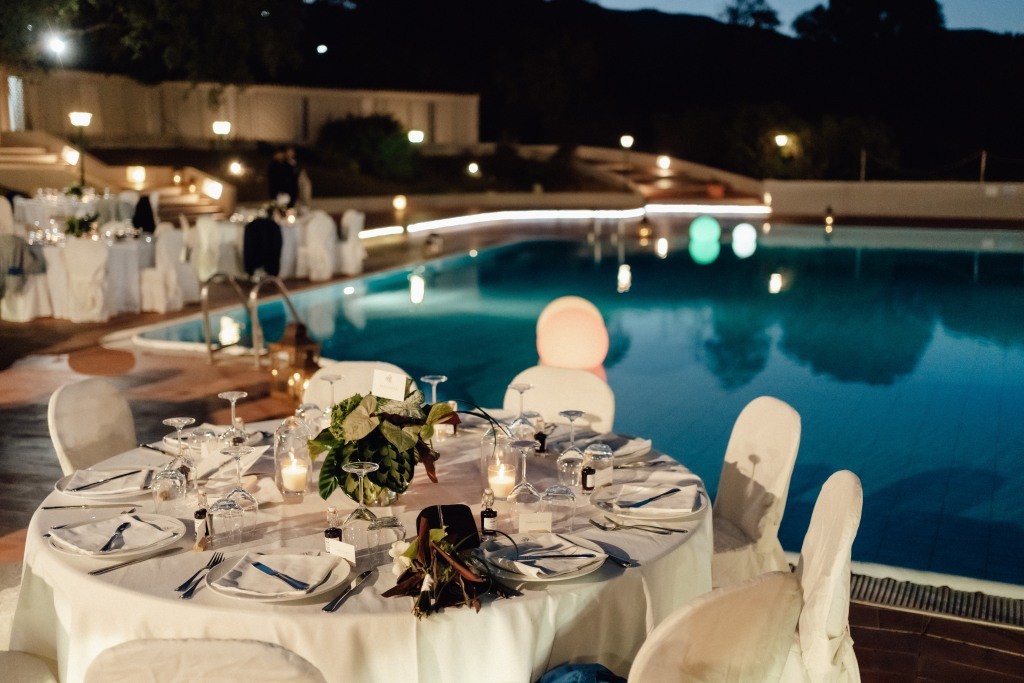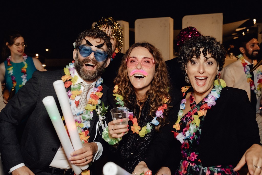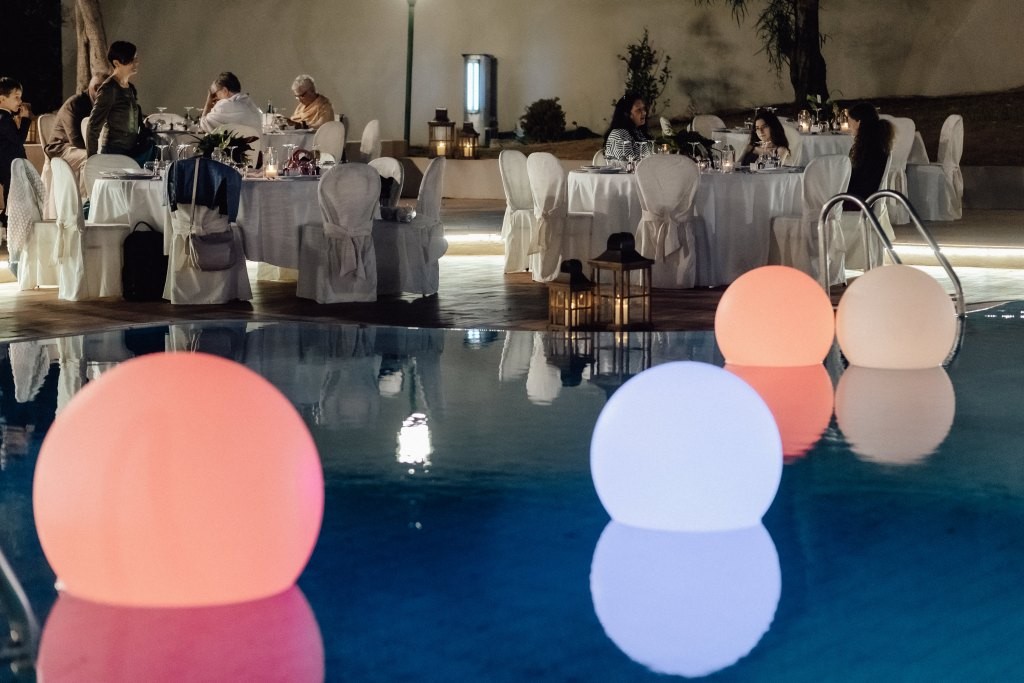 The celebration continued with an elegant outdoor dinner by the pool at one of our charming hotels near Pula. The atmosphere was refined yet joyful, leading into a lively fiesta loca where the couple themselves joined the fun in costume. Dancing under the stars, the party carried on late into the night.