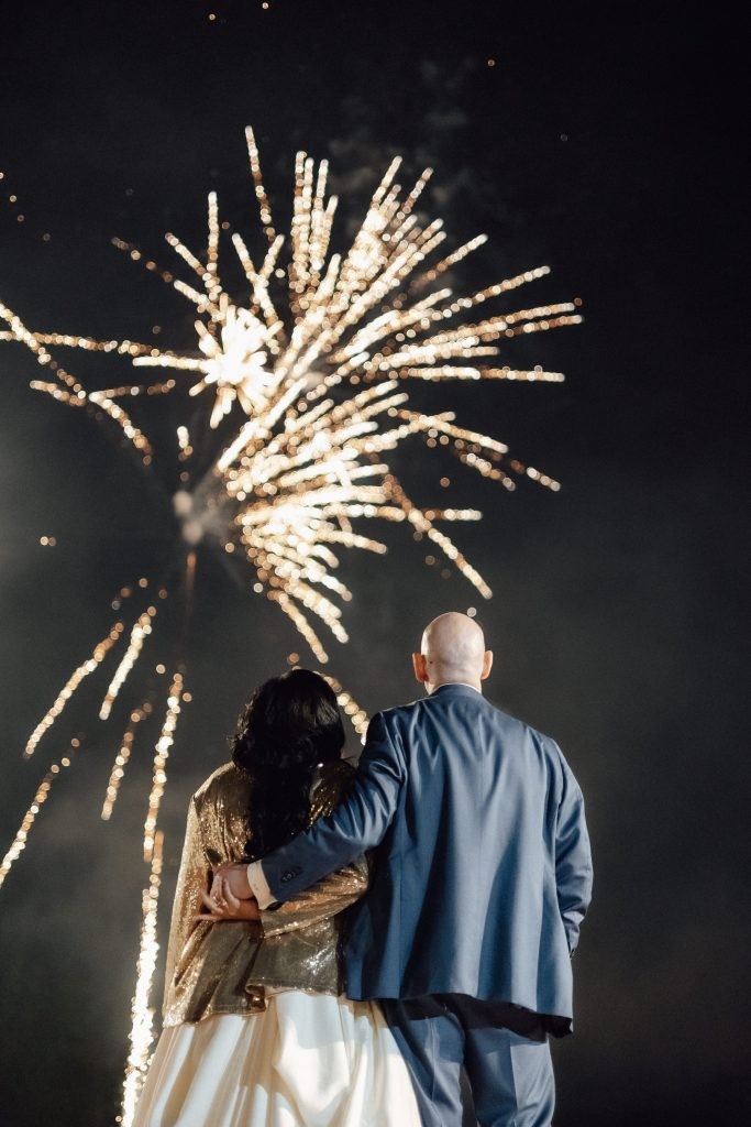 Passionate lovers of the sea, they dreamed of saying “I do” by the shore—and that dream came true. Their ceremony was crafted in Spanish, their language of love, with multilingual booklets thoughtfully prepared for guests who had travelled from across the globe. As they sealed their vows with a kiss, a rainbow of fireworks lit the sky, creating an unforgettable backdrop to their first moment as newlyweds.