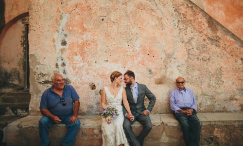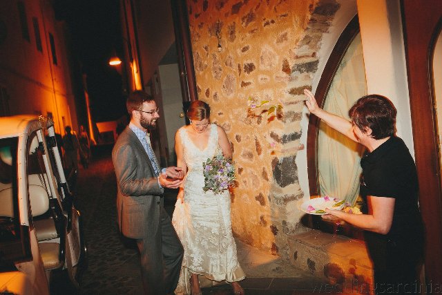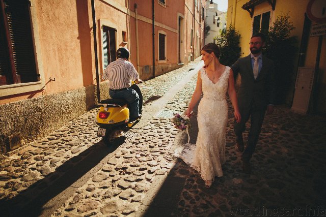 “Rory and I made the fantastic decision to go ahead and do a destination wedding in Sardinia. We picked Orosei, Sardinia because we have always wanted to go, and it is also a fantastic climbing spot. The countryside around Orosei, Sardinia is spectacularly beautiful with amazing lime-stone cliffs, olive groves and vineyards, and white sand beaches. Sardinia also has a rich heritage of culture and food, what could be better in one spot? Our ultimate vision was that we wanted to have a relaxing beach wedding with appetizers on the beach afterwards, the reception dinner back in town, and then late night beach party under the stars. We ended up biking back down after dinner just a few of us and relaxed and hung out on the beach. It was absolutely perfect. The experience that Frinaeventi provided us was unparalleled to anything that we could have had in the US. The traditions, the scenery, the food, the whole experience were unbelievably wonderful, and I wouldn’t change a thing. Being able to experience the Sardinian wedding traditions (specifically the rice throwing and plate smashing) is something that we will cherish for a lifetime. We definitely had some small anxiety that once we got there nothing would be as it seemed and that nothing would flow on our day, but it was completely to the contrary. Everything was wonderful and more wonderful than we could have hoped. We couldn’t have imagined a better venue, ceremony, and wedding party. I cannot stress enough how incredibly generous and loving everyone was to us at the venue and through Frinaeventi! They went out of their way to make sure that our wedding was special and incredible. Vittoria arranged everything impecably! The flowers, the dinner, the late night party, everything was so incredibly wonderful, we could not have asked for a more wonderful wedding experience.”