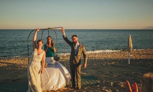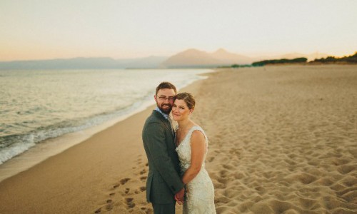 Annie and Rory are from US and climbing lovers. This is one of the reasons for which they choose the lovely village of Orosei, in the eastern coast, for its wedding in Sardinia. They had a very special ceremony with a “8-knot” ritual at sunset on the beach with a very small group of guests followed by an aperitif with Sardinian food. The reception took place on a panoramic terrace but for the party the bridal party went back to the beach for a celebration under the stars.