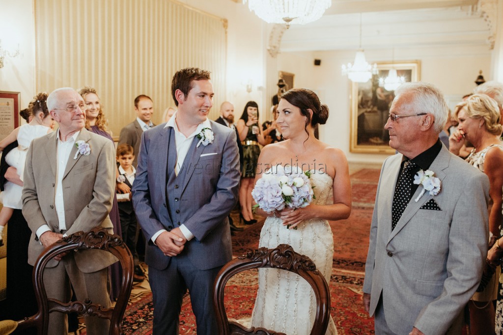 After the preparation at one of the most panoramic hotels of the town, a select group of family and close friends witnessed their exchange of vows in the superb historical town hall of Alghero on the 31st of May.