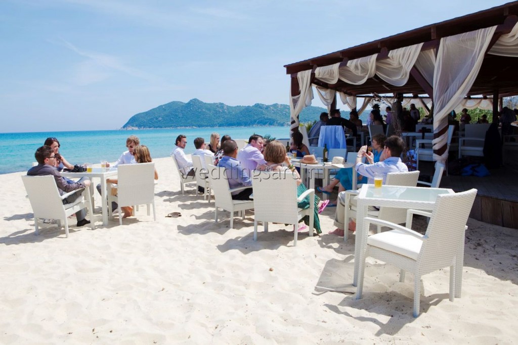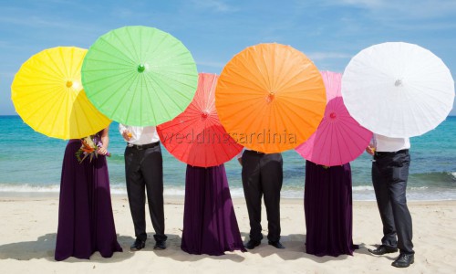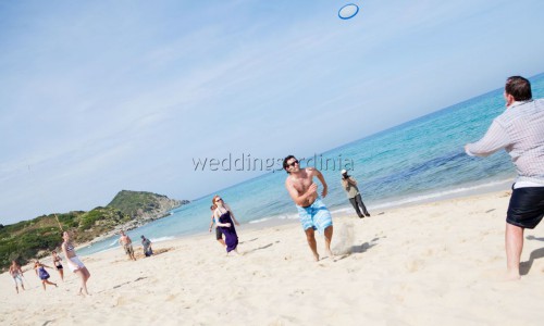 Dan and Denise had a fully wedding day in the South starting with an intimate civil ceremony in Castiadas, followed by a relaxed aperitif on a beautiful white sandy beach in Costarei and an elegant evening reception in a 4****hotel in Villasimius where the couples and some guests stayed during their time in Sardinia. The weather was amazing and assisted our couple during the whole day. At the end of the dinner a fantastic live band completed the event party around the swimming pool that lasted till late.