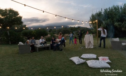 They decided to have a long buffet aperitif outdoor with a mix of Sardinian and veggy food while a live band provided a festive atmosphere.