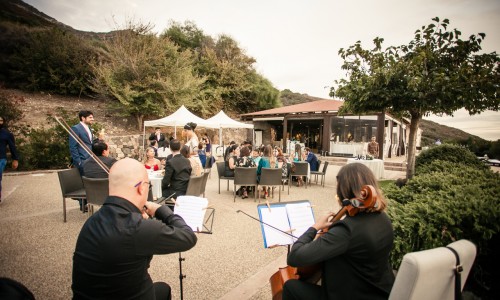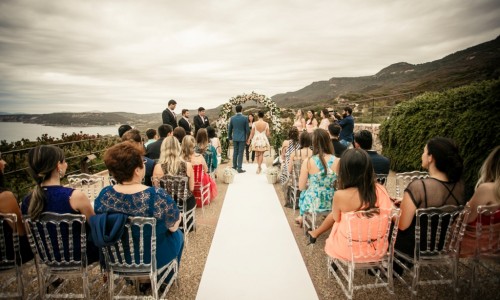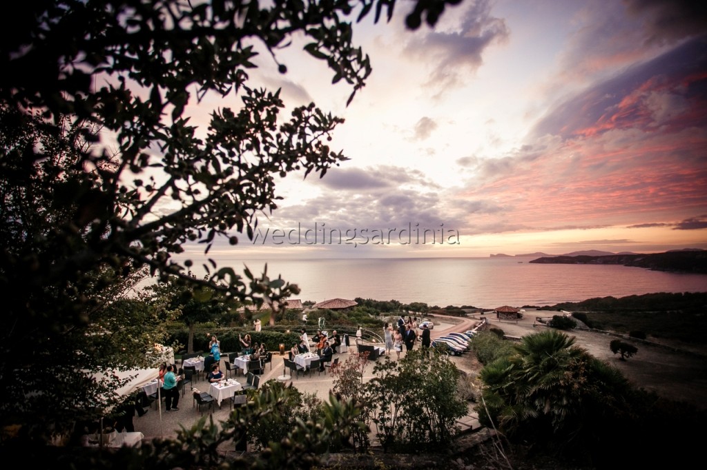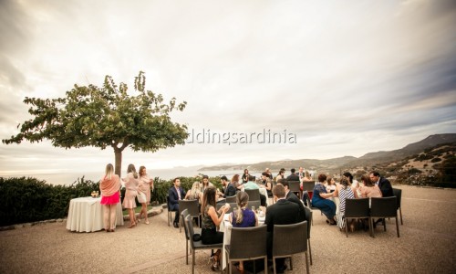 For the wedding they chose a panoramic venue with stunning views of Capo Caccia. A symbolic ceremony was celebrated at sunset by the Humanist Celebrant and was followed by a rich apeiritif on buffet at a panoramic terrace with the sound of a string duo.