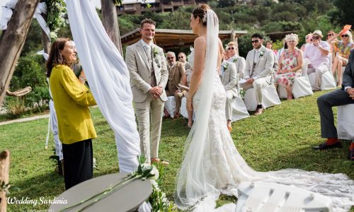 WeddingSardinia and Vittoria were more than we could have ever hoped for and created our dream wedding, for which we will always be grateful! From the very first moment we met Vittoria we felt calm, excited and in very capable hands. The whole planning process was made so much easier with Vittoria having a wealth of experience and contacts of vendors. Nothing was too much trouble and no question is a silly question! We, like so many others, had huge uncertainty leading up to our day due to the pandemic and Italy imposing further restrictions of UK arrivals. It was only 3 weeks before our date we were able to confirm our wedding could go ahead. It was an anxious time, but having Vittoria to support us through it all and reassure us that she and all other vendors would be as flexible as they possibly could be gave us great reassurance and luckily all the travel restrictions lifted just in time! On the day itself Vittoria was fabulous, she made sure everything was going on behind the scenes and setting everything up, whilst I was blissfully unaware getting ready. She even stayed until the very last guest left the hotel and made sure everyone got in the right taxis so we didn’t have to worry. Vittoria is incredibly thoughtful and thorough, she even had a surprise for us! We knew we wanted lights to decorate the outdoor dance floor, but left it in her hands to source the lights (as it was cheaper to hire from Sardinia than bring over from the Uk) and what she created was truly magical and loved by us and all the guests. If you are considering Vittoria and WeddingSardinia to plan your wedding I would whole heartedly recommend – you won’t regret it! Vittoria goes above and beyond and is a very talented, calming presence to have supporting you through your whole wedding experience.