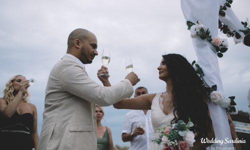 Gamze and Anton are from Germany but decided to get married in Villasimius with an intimate civil ceremony in front of the sea. The day was bit cloudy but it didn’t ruin the festive atmosphere created by their families and friends came from abroad to enjoy their wedding.