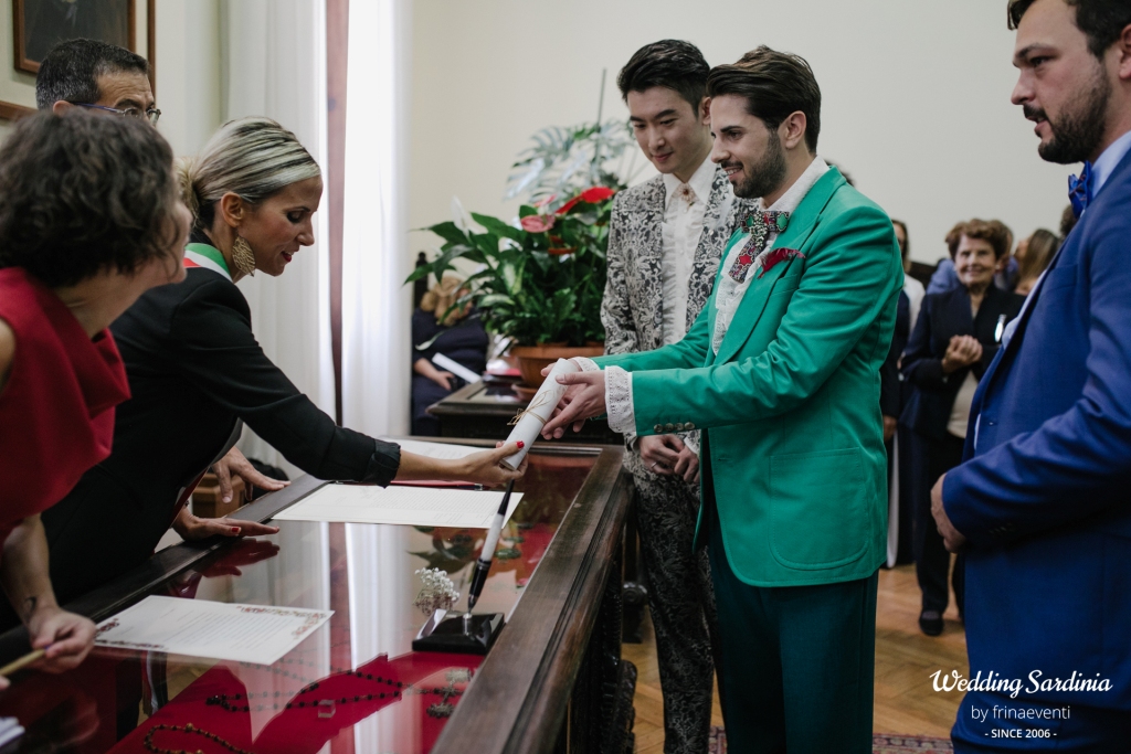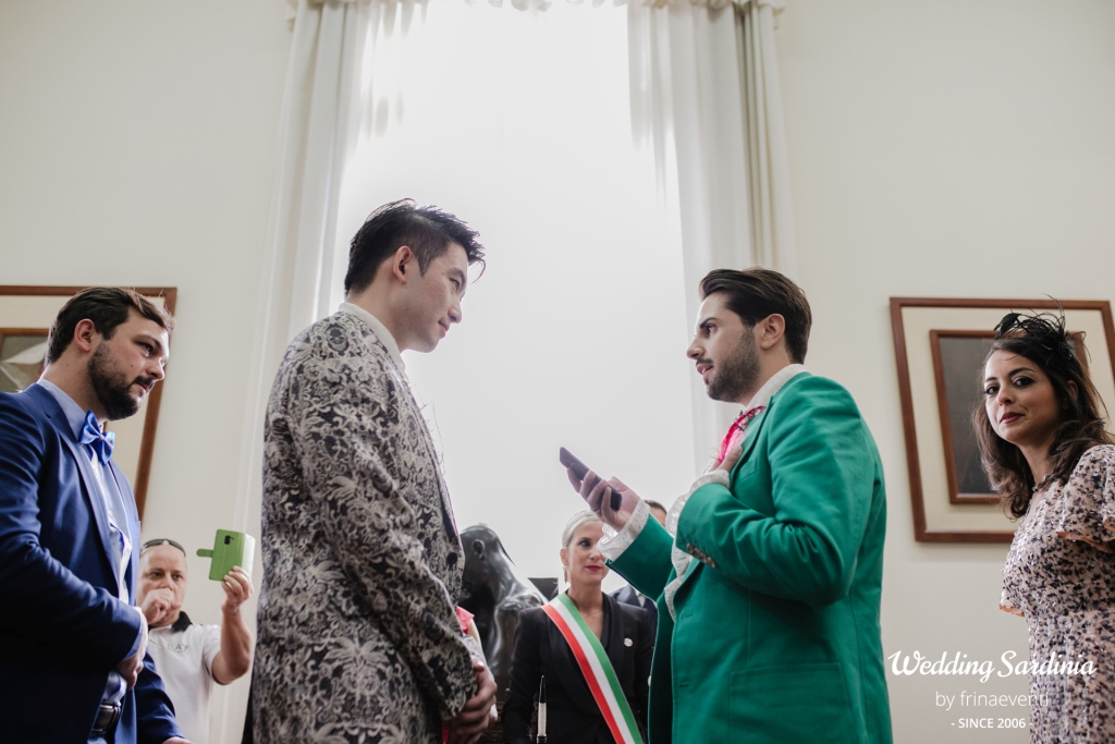 The civil ceremony was celebrated at the Palazzo Civico of Cagliari, one of the most beautiful in the island, and was performed by a close friend. It was a truly emotional moment made even more special by Jacopo’s mother’s reading.