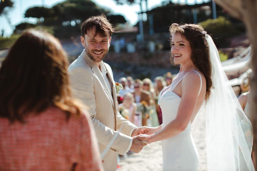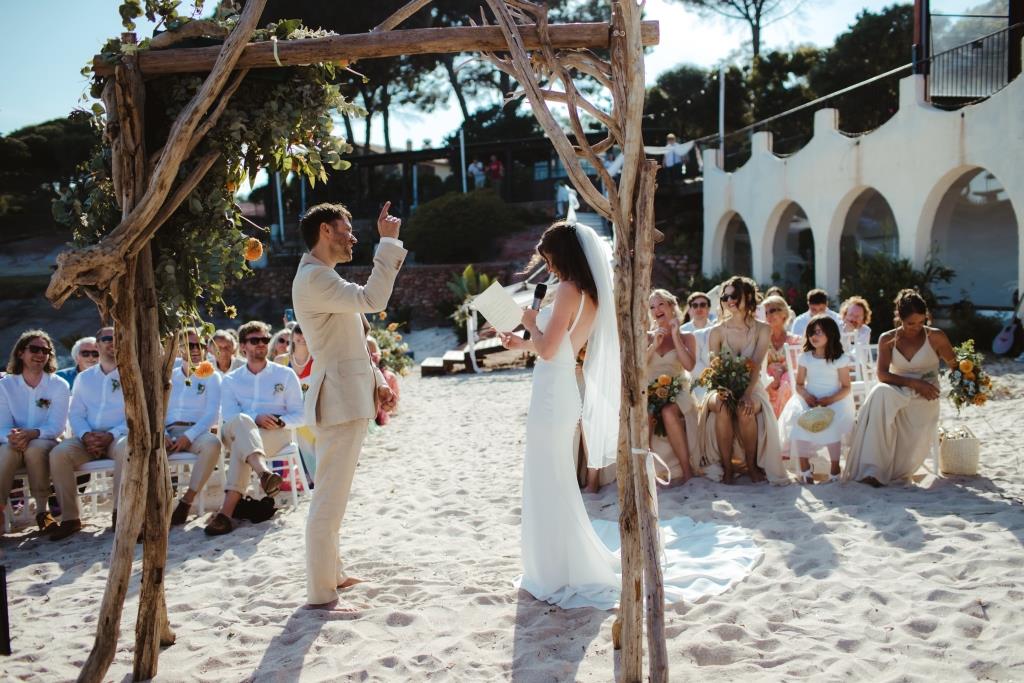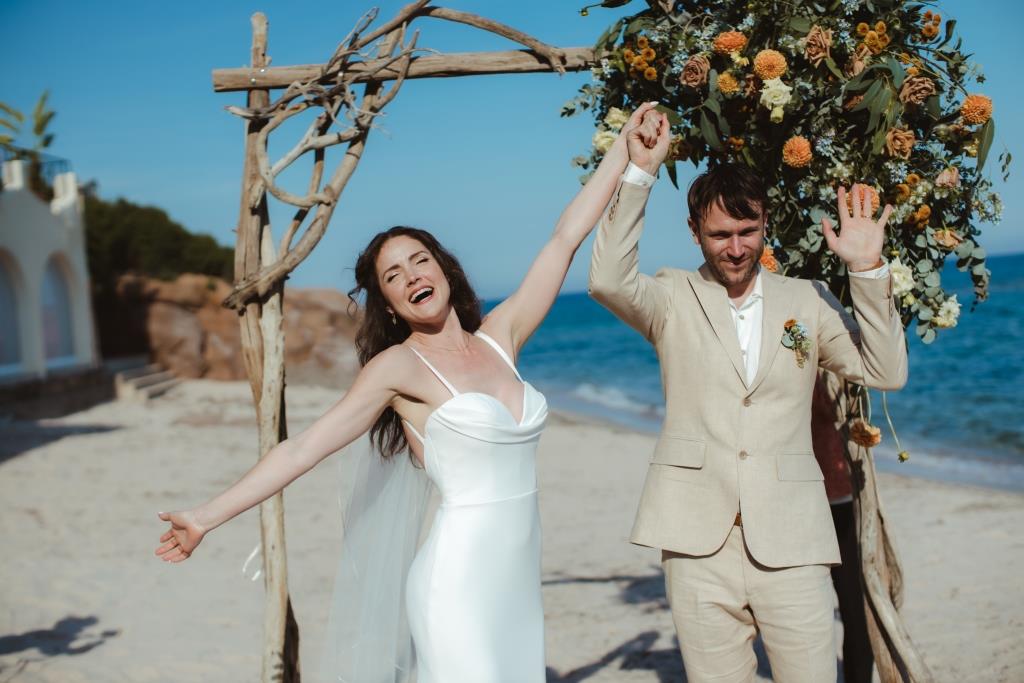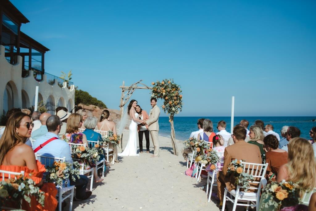 The sun was shining brightly on the day of their wedding, casting a golden glow over the picturesque landscape of Sardinia. The ceremony took place on the beach. Friends and family gathered from all over Europe to celebrate the union of this extraordinary couple.