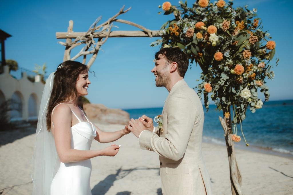 They met on Mediterranean beach so it only made sense for Seb to propose on a Mediterranean beach, and then to complete the trilogy, they decided to tie the knot on a stunning beach that held a special place in their hearts: Sardinia.