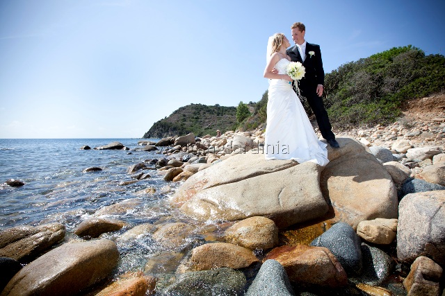 Lisa and Mark got married with a Catholic ceremony in the nice seaside town of Villasimius in the south east coast. After the celebration the bridal party enjoyed a funny but romantic photo session in one of the wonderful white sandy beaches of the area which was followed by a relaxed reception in a charming 4****hotel. During a whole week family and friends enjoyed the wonderful summer weather, the famous beaches of Villasimius and its lively atmosphere.