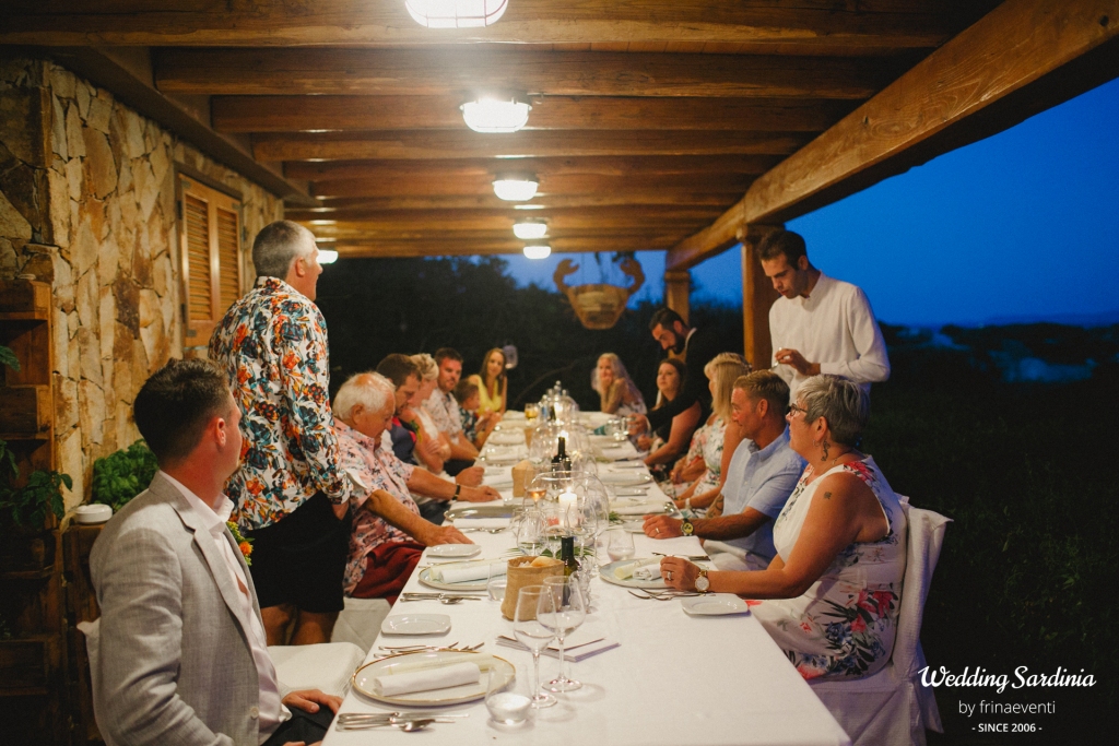 Few steps from the beach, the panoramic terrace of the tiny the beach restaurant of the hotel hosted a long table with all their guests for an elegant but relaxed sit down dinner.