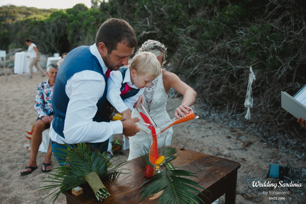 The barefoot ceremony at sunset was full of emotions, most of their guests cried, and his lovely son was included with the familiy sand ritual.