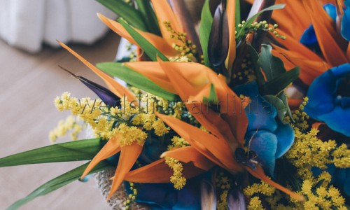 They chose a wonderful beach restaurant in secluded bay where just a little before sunset they shared their vows under a beautiful chuppa with a meaningful sand ceremony and a vibrant text written by Claudia, a Humanist Celebrant. The Color theme of the wedding was blue and orange and the flowers are typical of the South Africa from which the groom belongs.