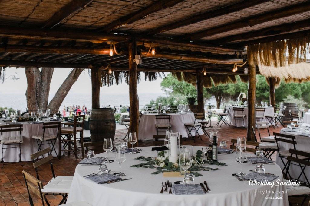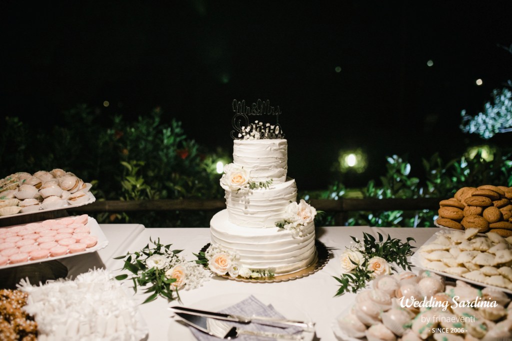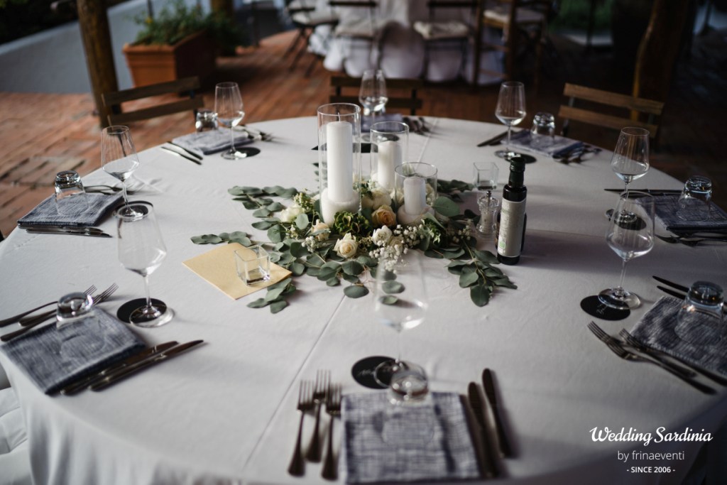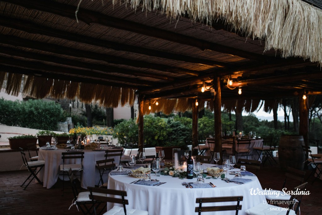 An elegant sit down dinner at the panoramic terrace of the restaurant with a special menu dedicated to Sardinia and a funny party till late with wedding cake and Sardinian traditional desserts completed the beautiful event.