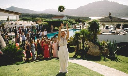 Porto Rotondo has been the location chosen for this romantic wedding, made even more special by families and friends coming from each corner of the world. A small colured world gathered in a small boutique hotel rented in exclusive use for a couple of days.