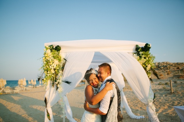 Tamsin and Elliott chose a peacock wedding theme to give a chic, classy, elegant and sophisticated look to their beach wedding in Chia.