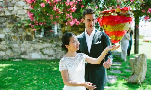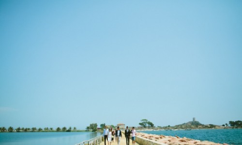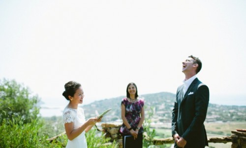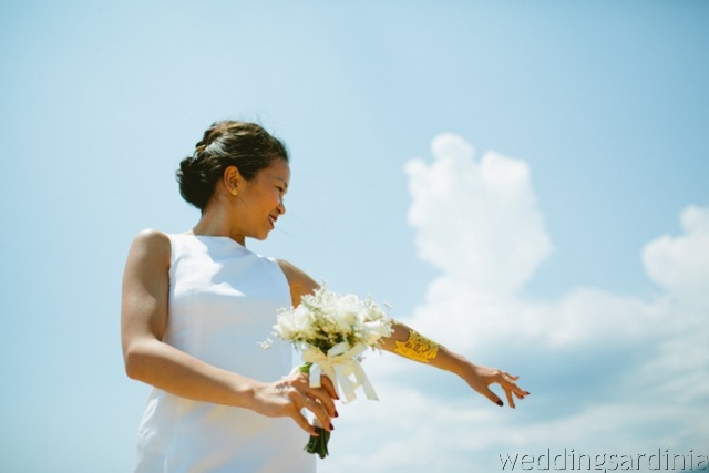 Tim and Mandy had never been here but they soon felt in love with our beautiful island and this is where they decided to tie the knot.They choose to have a very private and romantic wedding with their best friends spread all over the world and stayed all together in a lovely panoramic villa in Chia.They share their vows with a garden ceremony on the grass of the villa with a fabulous sea view as background and after the aperitif and many funny shots they moved to the closest village of Pula for lunch. Their restaurant was located in a strategic position amid a lagoon and the sea. The perfect scenario for a sunshine wedding.
