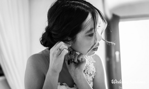 They had three ceremonies, the civil one celebrated in the morning at a historic house, the beach ceremony held on the private beach of the hotel followed by the Chinese tea ceremony on the roof terrace of the hotel, where they also enjoyed an intimate reception a spectacular light as the sun faded behind the hills.