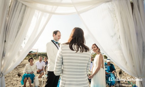 Vittoria helped us plan our Civil Ceremony, Beach Ceremony and Chinese Tea Ceremony in Orosei, Sardinia on 11th June 2018. Booking Frinaeventi/ Wedding Sardinia and having Vittoria as our wedding planner was, along with our videographer, hands down the best decision we made. She could always be counted on to reply quickly and fully to all queries. We had always wanted a venue that looked authentic – so that you could tell it was Sardinia – and the venue we chose was so unique and had loads of character. Vittoria not only helped us to plan our Chinese Tea Ceremony back at the venue on the terrace but she also sourced a local gelateria to provide an Ice Cream Cart. She met us the day before with our humanist celebrant, Claudia, to visit all the venues as well as go through all the decorations we had brought over with us. She was there the whole day with us right until well after our evening meal to ensure everything was as we wanted. This included finding somewhere with disabled facilities as my Mother-in-Law has mobility issues and uses a mobility scooter. The venue had a disabled room and both Vittoria and the hotel staff bent over backwards to ensure she could get to the beach and the terrace ensuring a balance between the authentic cobblestones vibe with disability needs. I also suffer from Fibromyalgia in my arms which means I cannot lift, carry or apply pressure and Vittoria was very adaptable in making changes such as having wrist corsages instead of a bouquet. She goes above and beyond – we were having a Wedding Celebration back in London when we returned after 9 days sightseeing around Sardinia and so Vittoria also helped us find a bridal wear dry cleaners in the next town we would be staying in. Nothing is too much trouble for her and she prioritises giving a bespoke unique service.